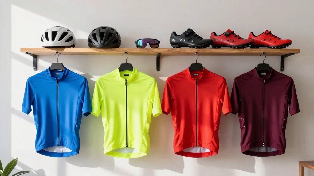 Building your cycling wardrobe slowly also encourages mindful purchasing. Instead of impulsively grabbing the latest trendy gear, you’ll be more likely to choose items that genuinely enhance your rides and match your riding conditions. This approach prevents clutter and makes your gear last longer because you’re investing in quality pieces rather than cheap, disposable items. As you accumulate more gear, think about how each piece complements your existing wardrobe. This way, you avoid ending up with mismatched or redundant items, simplifying wardrobe organization and making your cycling experience more enjoyable. Additionally, understanding the importance of biodiversity and conservation in your outdoor activities can inspire you to select eco-friendly and sustainable gear options whenever possible. Incorporating marine equipment reviews and sustainable practices into your gear choices can help reduce your environmental impact and promote responsible consumption. Being aware of the environmental impact of your gear choices can further motivate you to prioritize sustainable materials and brands. Recognizing the long-term durability of gear can help you make smarter, more eco-conscious decisions. Finally, don’t forget to evaluate your gear regularly. As seasons change or your riding habits evolve, some items may no longer suit your needs. By building your wardrobe gradually, you maintain flexibility and ensure that every piece serves a purpose. This steady, intentional process keeps your cycling wardrobe manageable, functional, and tailored to your riding journey, helping you stay comfortable and motivated on every ride.