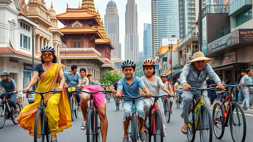 No matter where you cycle, understanding local attire norms helps you blend in and ride comfortably. Respecting cultural nuances shows you’re considerate, and it can even open doors to new connections. Remember, when in Rome, do as the Romans do—adapting your gear shows you’re respectful and adaptable. Embracing these differences enriches your experience and keeps you safe on the road. So, gear up with awareness, and enjoy every pedal stroke around the world.