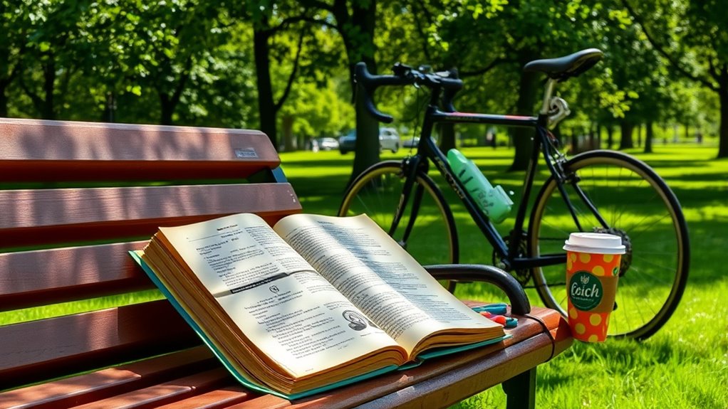 To start your cycling book club, focus on themes like cycling history, culture, and practical techniques to spark engaging discussions. Choose books about legendary racers, local cycling traditions, or guides on riding skills and bike maintenance. Incorporate topics on sustainability and environmental issues for broader conversations. Regular meetings, whether online or in person, help foster community, encourage sharing tips, and support growth. Keep exploring these themes to create a vibrant space for passionate cycling enthusiasts—more ideas await you.