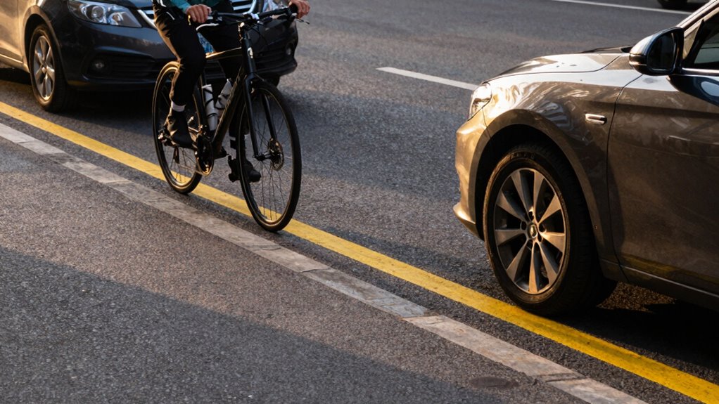 To stop getting doored, stay at least three feet away from parked cars whenever you ride past them. Keep a safe distance to stay out of the door zone where drivers might suddenly open their doors. Position yourself slightly ahead of parked vehicles at intersections and signal your intentions clearly. Wearing bright gear and maintaining good visibility also help drivers notice you in time. If you want to learn how to stay safer and avoid dooring, keep exploring these tips.