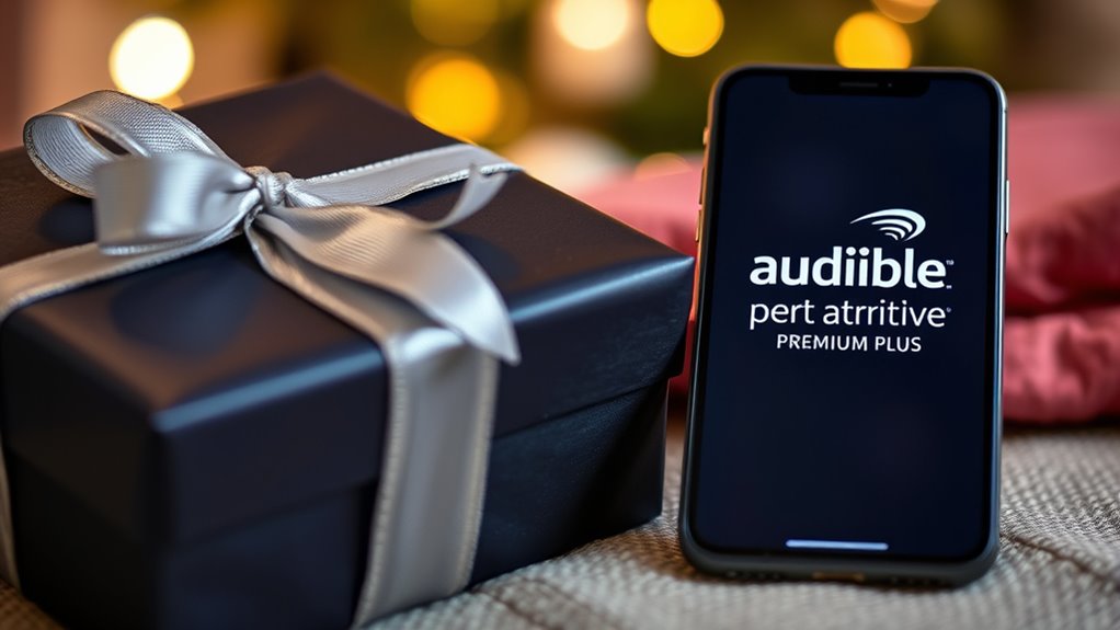 I recommend choosing an Audible Premium Plus gift membership that fits your budget, matches the recipient’s listening tastes, and offers flexible options like varying durations. Think about their favorite genres, preferred devices, and whether they want immediate access or a physical gift. The best choice combines great content variety with convenience and personalization. If you keep these factors in mind, you’ll find the perfect gift. Keep reading to discover how to select and give this thoughtful present.