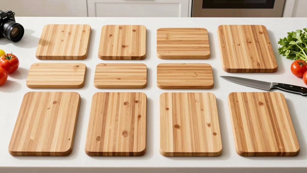 Yes, bamboo cutting boards are safe for direct knife contact. I’ve found that they’re gentle on knives and don’t dull blades quickly. Their dense, natural fibers provide a sturdy surface that minimizes slipping and damage. Just make sure to keep your bamboo board clean and avoid soaking it in water for long periods. Proper maintenance guarantees your bamboo cutting board stays safe, durable, and knife-friendly for years.