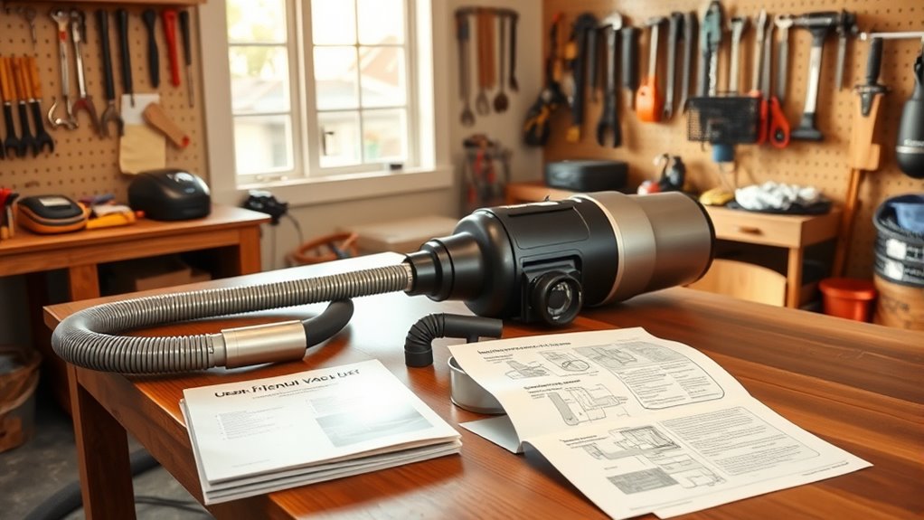 To install a central vacuum system, I found I needed several essential tools. I gathered a drill, a saw, and a tape measure for cutting and measuring. A level helped guarantee my installation was straight, and I used a wrench for tightening connections. Don’t forget duct tape and cable ties for securing hoses! With these tools in hand, I felt ready to tackle the installation and create a cleaner home environment.