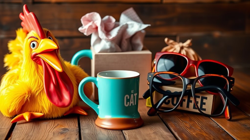 Understanding the recipient’s humor style is key to selecting a gag gift they’ll genuinely enjoy. Think about whether they prefer dry, sarcastic humor or silly, slapstick jokes—this helps narrow down your options. Pay attention to their reactions to memes, jokes, or comedy shows; these clues reveal what makes them laugh. Consider their personality—outgoing folks might love bold, attention-grabbing gifts, while introverts may prefer clever or subtle humor. Also, gauge their comfort level with bathroom humor, puns, or edgy jokes to avoid crossing boundaries. Finally, factor in their interests and hobbies—gifts that tie into what they love make the humor more personalized and appreciated. Matching the gift to their humor style ensures it’ll be a hit.