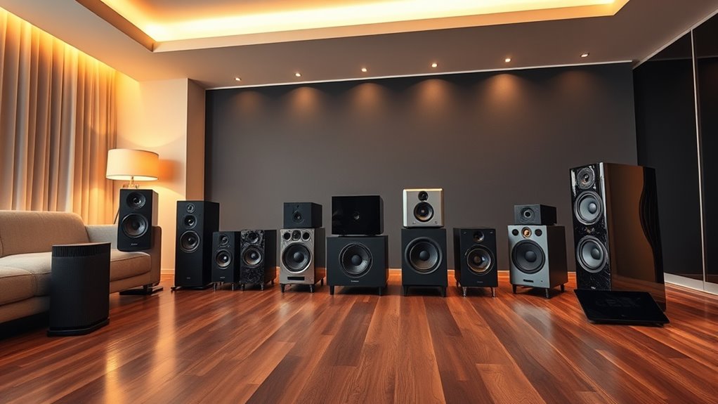 Achieving excellent sound quality and clarity in a hi-fi home speaker system depends on precise engineering and thoughtful setup. High-fidelity systems aim for accurate sound reproduction with minimal distortion across all frequencies, ensuring every note is true to the original. Clarity hinges on well-designed drivers, accurate crossover networks, and high-quality internal components that preserve intricate audio details. Supporting high-resolution audio, up to 24-bit/96kHz, further enhances richness and depth. Proper speaker placement and room acoustics are vital, as they reduce echoes and interference, maximizing clarity. Features like dynamic range compression and digital signal processing (DSP) help maintain sound fidelity at varying volumes and complex passages. Ultimately, these elements work together to deliver a pristine, immersive listening experience.