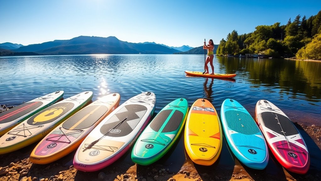 As you explore these top inflatable paddle boards, think of each as a gentle invitation to glide effortlessly across shimmering waters, where adventure whispers softly at your side. Whether you seek tranquil lakes or lively rivers, these boards promise a smooth, enjoyable experience—like a quiet dance with the waves. So, pick your perfect match and let the water’s embrace carry you into unforgettable moments of serenity and fun.