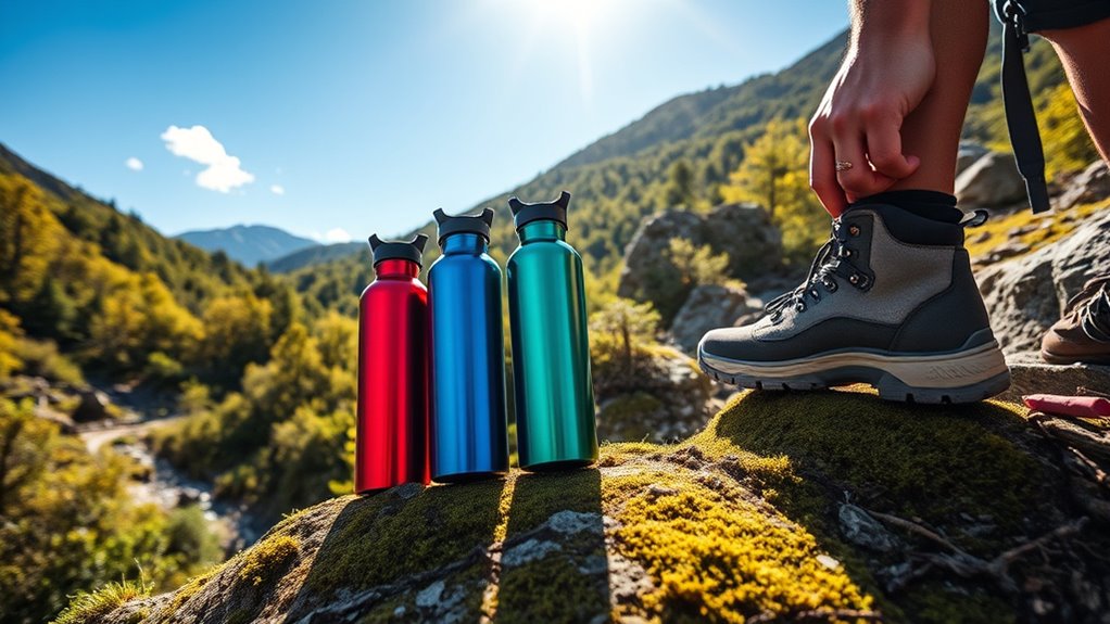 Looking for the best insulated water bottles for hiking in 2025? I’ve tested and curated options that keep drinks cold up to 48 hours or hot for over 12 hours, with capacities from 18 to 64 oz. Durable materials like stainless steel, leak-proof lids, and added features like paracord handles make them perfect for outdoor adventures. Keep in mind size, insulation, and portability. If you want detailed insights, you’ll find more useful tips below.