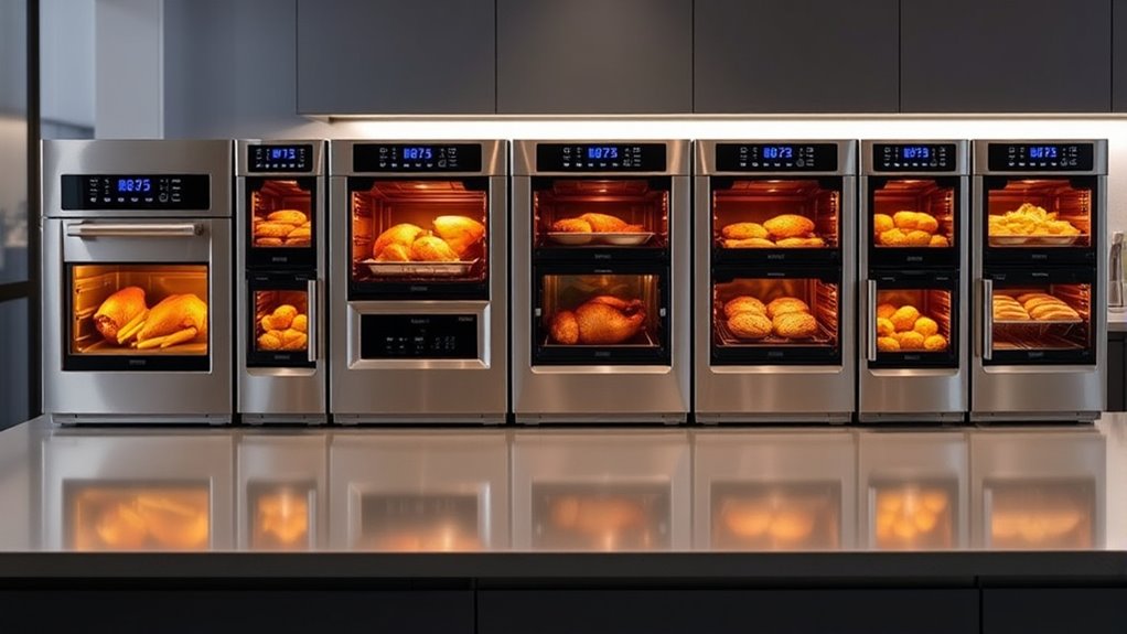 Premium air fryer oven combos are quite energy-efficient because they cook faster and use less power than traditional ovens. I’ve noticed they heat up quickly and require less cooking time, which saves energy. Plus, their multi-functionality means I don’t need separate appliances, reducing overall energy consumption. Overall, I find them a smart, eco-friendly choice that helps me save on my electricity bills while enjoying versatile cooking.