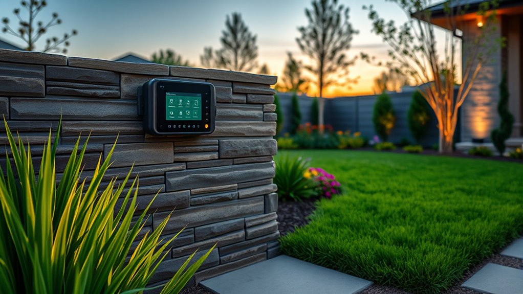 Think of firmware updates like tuning a car—they keep things running smoothly and safely. I’ve found that these updates typically happen every few months, depending on the manufacturer. They often include performance boosts and security patches, which are vital for protecting your system and ensuring peak watering. Staying current with updates is like giving your controller a regular check-up, helping it perform at its best and keeping your lawn healthy and secure.