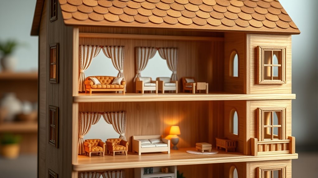 Picking the perfect wooden dollhouse set feels a bit like finding a treasured keepsake—once you do, it becomes a delightful part of your child’s world. With so many lovely options blending style and sturdiness, I’m confident you’ll find one that sparks joy and encourages imagination. After all, a well-chosen dollhouse is like a gentle invitation for endless stories and cozy adventures, making every playtime a cherished memory in the making.