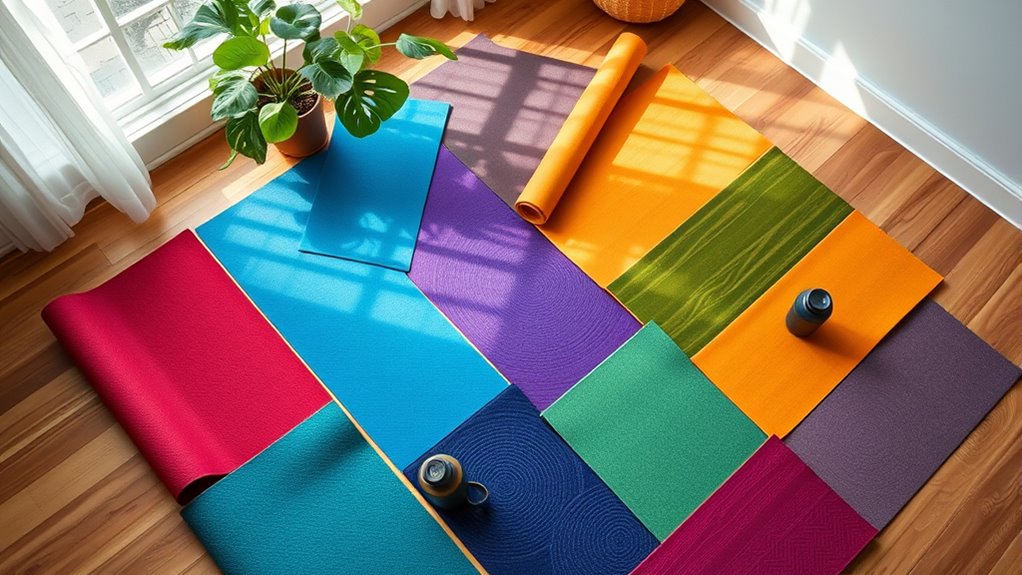 As I delve into the world of premium yoga mats, the non-slip surface features stand out as a critical factor for joint support and safety. A high-quality mat often has textured or ribbed patterns that increase traction, preventing slips during sweaty or dynamic poses. I’ve found materials like TPE, natural rubber, or PVC with specialized grip coatings enhance this grip, even in humid environments. Additionally, a stay-dry or moisture-wicking topcoat absorbs sweat, keeping the surface safe and dry. It’s essential that these non-slip mats are durable and resistant to wear, maintaining consistent traction over time. Ultimately, a well-designed non-slip surface provides a secure footing, supporting my stability and balance, and minimizing the risk of injury during challenging poses.