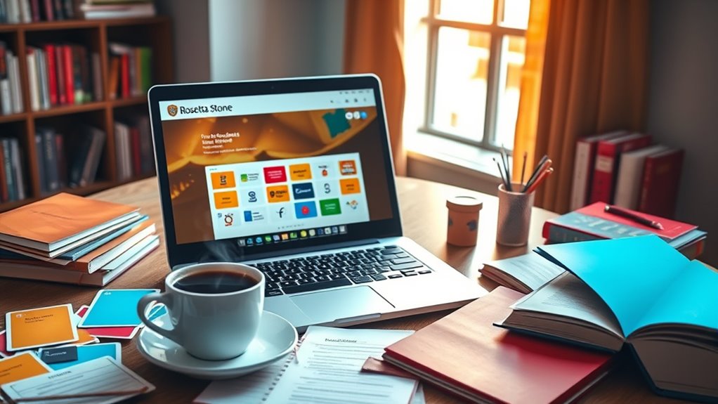 Looking for the best Rosetta Stone lifetime deals in 2025? I found top options offering flexible access, immersive language courses, and great value for your investment. Some deals include older versions, but they still deliver effective learning tools for beginners and intermediates. If you want to see the top 11 options, including their pros and cons, keep going—there’s plenty more to help you choose the perfect fit for your language goals.